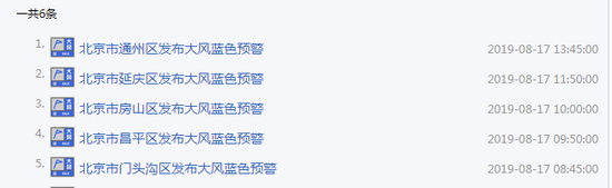 昌平区气象台17日09时50分发布大风蓝色预警,预计当前至17日20时,昌平区将有4级左右偏北风,阵风可达7级左右,请注意防范。