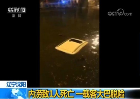 辽宁沈阳 内涝致1人死亡 一载客大巴脱险