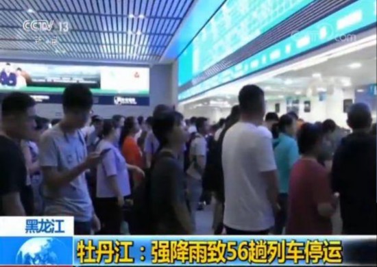 黑龙江 牡丹江:强降雨致56趟列车停运