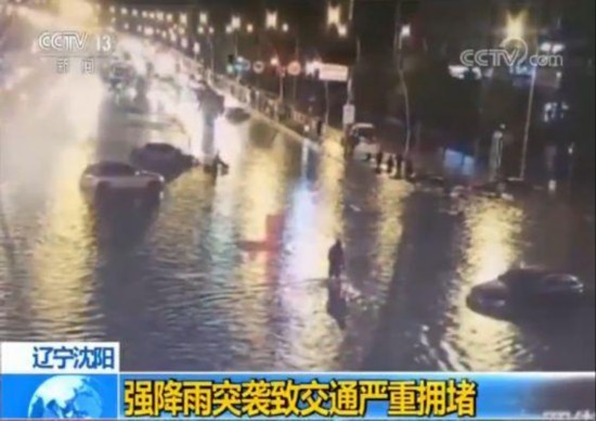 辽宁沈阳 强降雨突袭致交通严重拥堵
