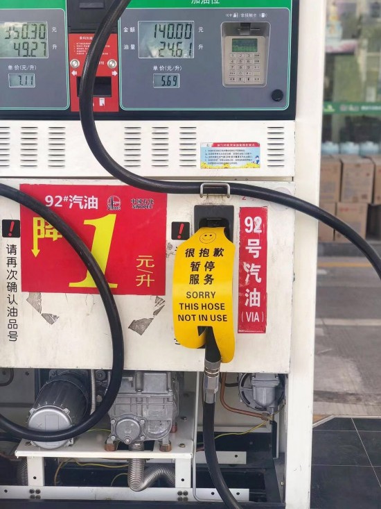 工作人员将问题加油枪挂上了“暂停服务”的牌子,并及时联系了维修单位。