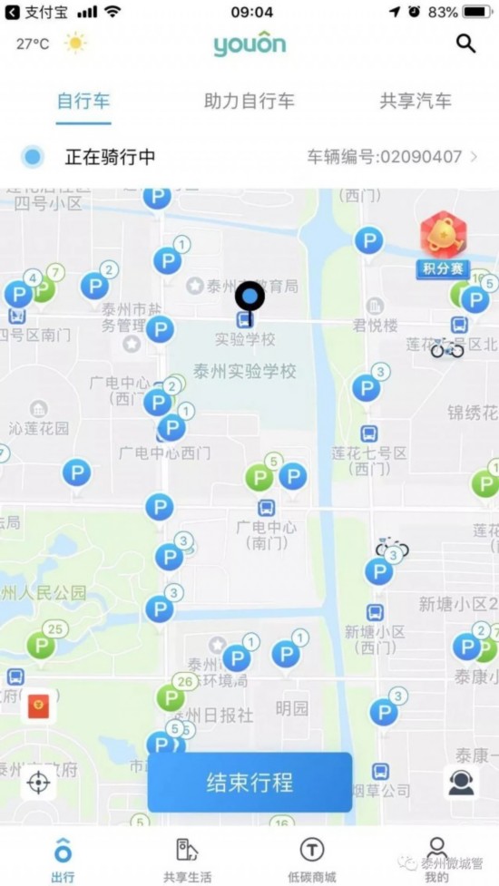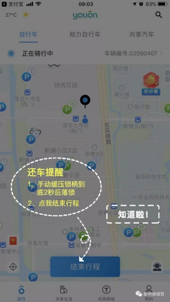 5、如何结束订单?锁车成功后在APP下方点击“结束行程”