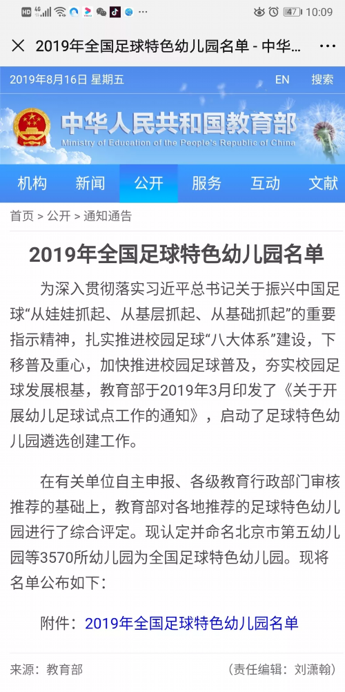 16日,教育部发布2019年全国足球特色幼儿园名单。