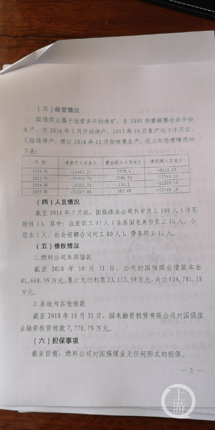 上游新闻记者调查获悉,平鲁区政府领导多次到国电电力以及国电电力上级单位进行沟通,然而并没有实质性的进展。由于国强煤业长期停产,导致连年亏损过亿元,累计亏损已超6亿元(不包括7亿多元的技改资金),最终被拖成了国电集团的特困企业。