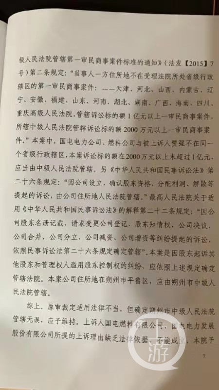 随后,国电燃料和国电电力上诉至山西省高院,2018年7月10日,山西高院裁定,朔州市中级人民法院管辖无误,上诉理由缺乏法律依据,予以驳回。