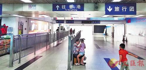 目前正值暑假,原本一片繁忙的皇岗口岸显得十分冷清,旅游团也全部绝迹。香港文汇报记者在前往香港方向的出境大厅看到,以往密集的人流消失了,只看到几个孩童在玩耍,需要等数分钟方可见到一两个过关客人。