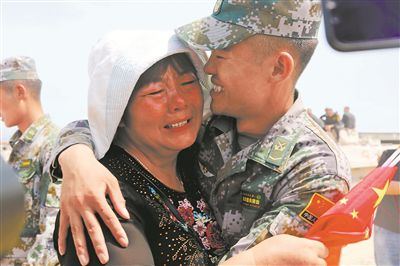 第一车组下士驾驶员黄晓龙,一个箭步冲到脚还没落地的妈妈亓金兰身边,一把抱住,俩人都忍不住掉下眼泪。“妈,您的脸都晒红了!”入伍4年,第一次与妈妈见面的晓龙,心疼地帮妈妈擦拭泪水。他动情地说:“妈妈,您的拥抱和金牌一样珍贵。”待到情绪平复下来,晓龙的妈妈告诉笔者,4年前,晓龙入伍后不到半年,她就去了在莫斯科工作的女儿家,帮着带了3年孩子。去年,晓龙探了一次家,但她还在莫斯科,所以这一次见面,是母子俩4年来见的第一面。