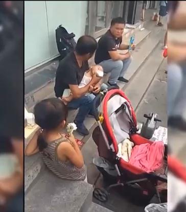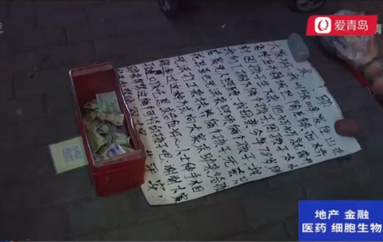 视频中,一名男子坐在马路边,正在给怀里的男孩喂奶,旁边还坐着一个小女孩,周围聚集了不少路人,男子是谁?为何会出现在这里呢?晚上七点多,在长春路上的公交站旁,记者找到了视频中的男子,地上放着一张纸,上面写着求助,铁盒子里装了不少零钱。