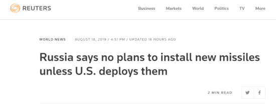 特朗普政府今年2月宣布启动退约进程,并于8月2日正式退出《中导条约》。作为全球军控的重要支柱,该条约的终止引发多国的担忧。有分析认为,美国可能在亚洲和欧洲部署导弹系统,在全球引起新的军备竞赛。