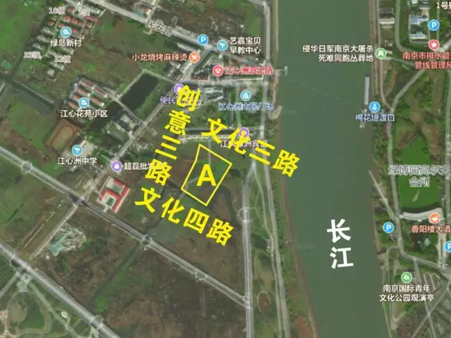 地块四至:建邺区江心洲南部,北隔绿地至文化三路,东邻住宅用地,南邻文化四路,西邻创意三路。