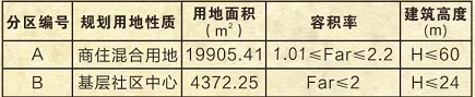 规划要点:地块分A、B两个区域。
