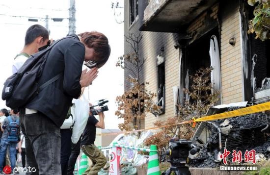 当地时间2019年7月21日,日本知名动画制作公司“京都动画”的工作室发生火灾后民众现场悼念。7月18日,位于日本京都伏见市的日本知名动画制作公司“京都动画”的工作室遭一男子恶意纵火,发生爆炸性火灾,造成35人死亡。 图片来源:ICphoto