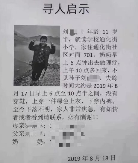 8月19日晚,湖南永州市冷水滩公安分局发布警情通报称,2019年8月17日,冷水滩公安分局接到报警,冷水滩区通化街刘某铧(男,2008年2月出生)在家中失踪。