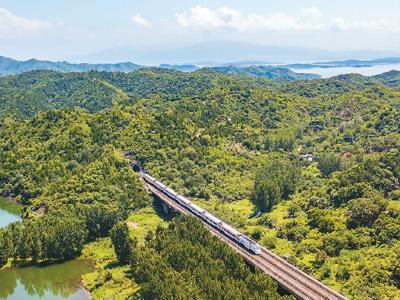 一辆客运列车在京郊S5线(市郊铁路怀密线)上行驶。帅冶摄(人民视觉)
