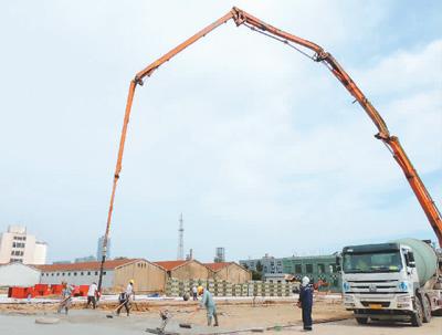 江苏省连云港市市郊铁路目前正在建设之中,是该省首条市郊铁路,线路全长35.1公里。图为近日工人在连云港市市郊铁路墟沟站前广场施工。耿玉和摄(人民视觉)
