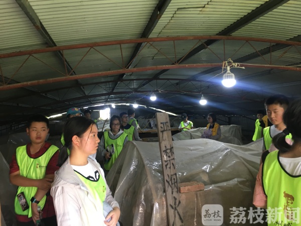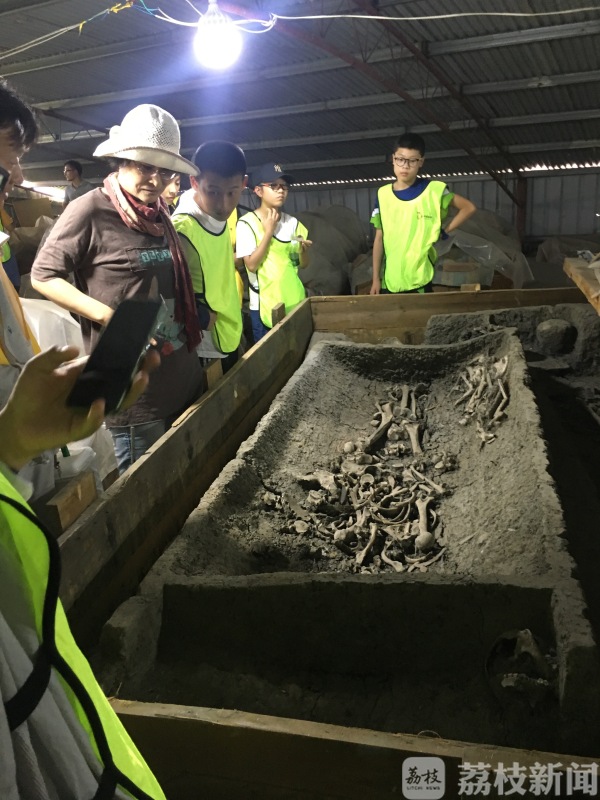 孩子们现场参观蒋庄遗址发掘现场、遗址出土的墓葬,并听考古人员讲解蒋庄遗址发掘的意义。