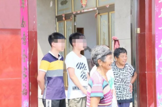 8月17日,先锋公益10多名骑友骑行10多公里来到沈高镇双星村,将助学金送到了王女士的双胞胎儿子小彭、小程的手中。