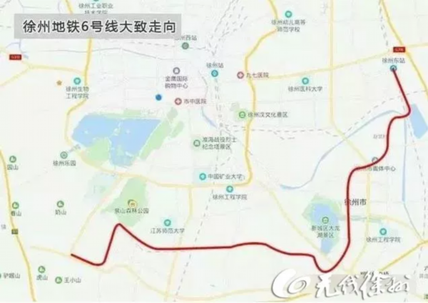 根据此前报道,徐州地铁6号线起自徐州国家高新技术产业开发区,止于高铁徐州东站,途中经过新城区,建成后将串联主城区东南部三大主要板块。