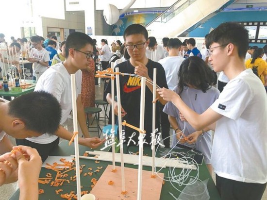在指导老师和拓展部工作人员的精心组织和现场指导下,参与活动的同学们充分发挥了团队想象力和集体智慧,并依靠团队合作的力量,亲手制作了一部部由能量守恒、加速度和力交织在一起的过山车模型,共同完成了这次智力挑战。
