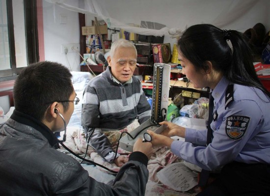 戴华和丈夫一起为丁增明量血压。扬公宣摄