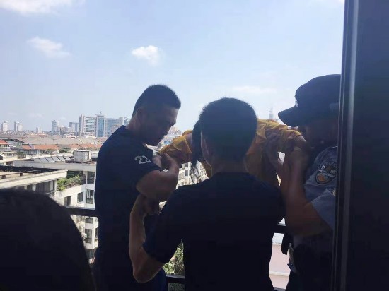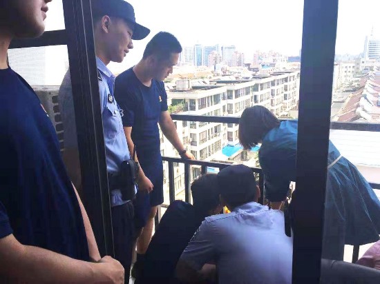 昨天上午9点多,有市民报料称,路过兴城西路时,看到附近商务楼下围了不少人,原来,在7楼有一名女子悬在防护栏外,看上去十分危险,随时都有坠落的可能。太阳正好照射在女子所处的地方,天气炎热,时间长了很有可能要发生意外。