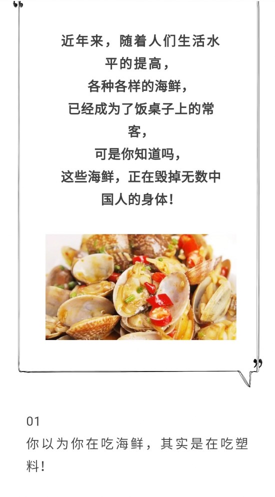 “这些海鲜,正在毁掉无数中国人的身体……”通过徐先生转来的该文章,记者发现,毁掉身体、吃海鲜就是吃塑料等内容文中多次强调,还引用了不少国外研究机构的调研。