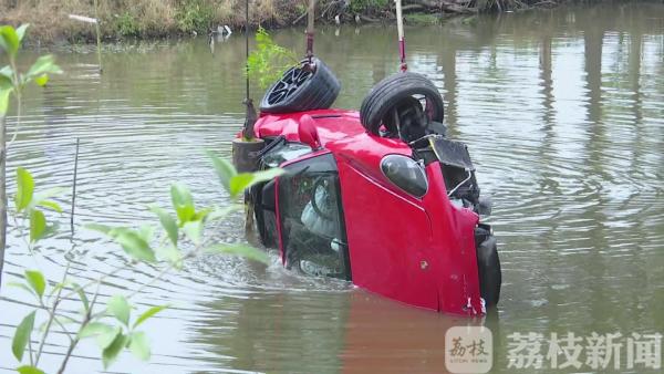 在岸边,记者见到了惊魂未定的车主。车主说:“当时突然看见转弯,来不及,慌了,一下子冲入河中。”