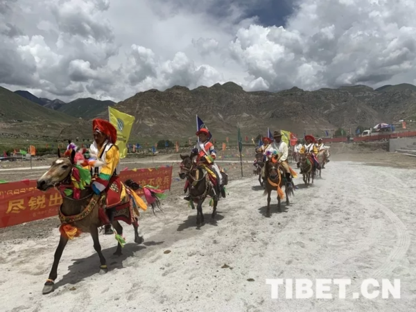图为堆龙德庆区各村镇组织骑手开展马术表演