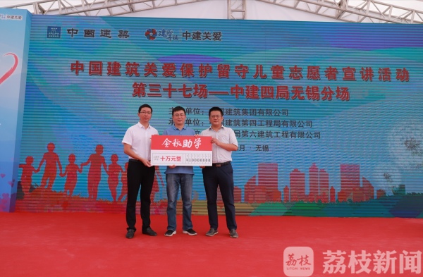 此次活动还邀请了项目所在地的贫困学生及环卫工人一同参与。中建四局六公司和中国金茂无锡公司的领导给员工和工人子女准备礼物的同时也为他们准备了清凉物品和帮扶金,并当场向驻地教育事业金秋助学十万元、图书500册。