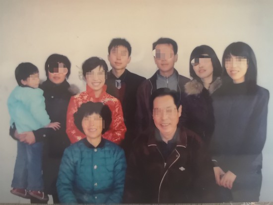 田家人全家福。左二为田茹,右二、右三为田丰夫妻。受访者供图