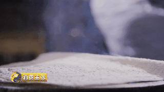 擀好的生馍平铺在大火烧热的铁鏊子上,接下来最重要的就是翻,翻要翻得准、快、平,翻面的时间以秒计算,一秒之差就会有生糊之别,尺度的拿捏绝非一日之功,且动作要快,馍要摊平,这样翻几次后,一张烙馍就做好了。