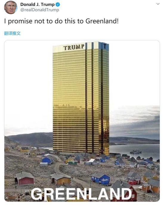 19日,这位地产商出身的美国总统还发了一条颇具“自黑”精神的推文:“我承诺不会对格陵兰岛这样做!”