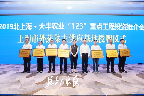 生产和供应上海15%的鲜奶、12%的优质大米、8%的瘦肉型生猪和3%的淡水产品……8月22日下午,盐城市大丰区在沪举办2019北上海·大丰农业“123”重点工程投资推介会。14个现代农业重大项目现场集中签约,总投资15亿元。同时,大丰7个现代农业基地成为上海市外蔬菜主供应基地,上海市商务委进行了现场授牌。