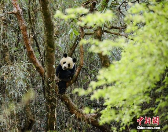 资料图:两只大熊猫在卧龙核桃坪野化培训基地接受为期两年左右的野化培训。 钟欣 摄