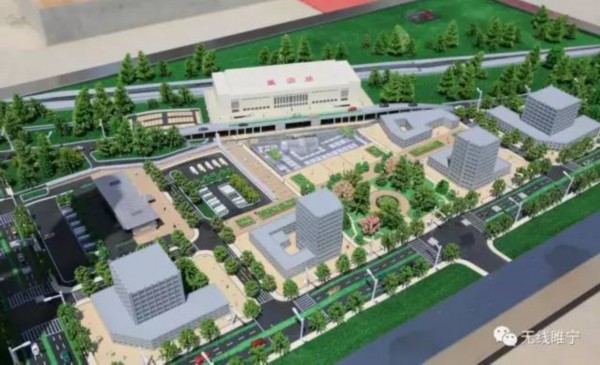 睢宁站综合客运枢纽占地约387亩,总投资约7.6亿元,规划建设成一个集铁路、汽车客运、公交、出租及社会车、商业及办公用的一个综合客运枢纽。