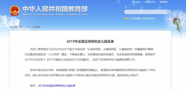 日前,教育部公布《2019年全国足球特色幼儿园名单》,认定并命名北京市第五幼儿园等3570所幼儿园为全国足球特色幼儿园,江苏115所幼儿园入选,宿城1所幼儿园上榜。