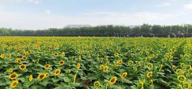 这里向日葵连片开放,放眼望去,犹如一幅金色的画卷。