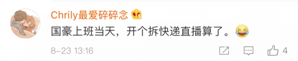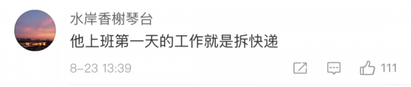 还有机智的网友调侃说,“他上班第一天的工作就是拆快递”。↓