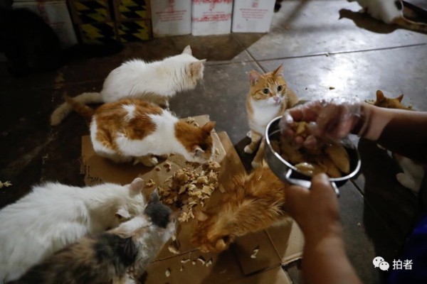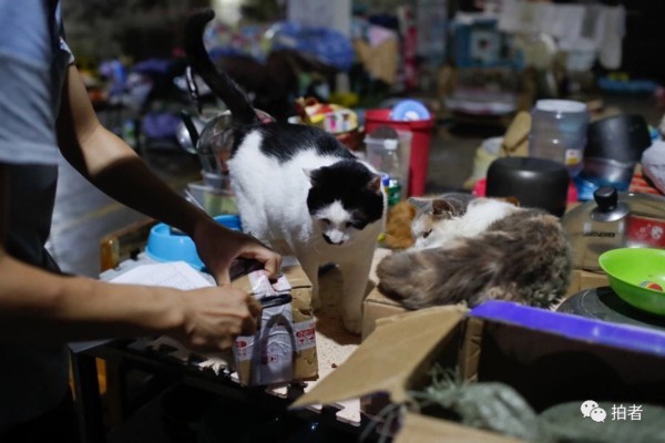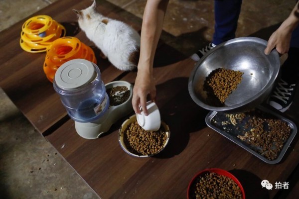 倒猫粮的时候是他最喜欢的时刻——十几只猫围上来,一些黏人的猫凑在他脚边蹭来蹭去,“感觉特别爽”。