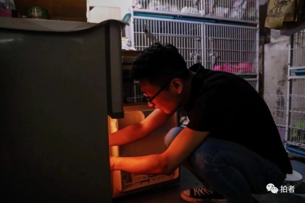 △尹奕正在整理冰箱里为猫咪准备的疫苗和药品。