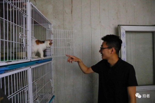从那时起,他就开始关注一些北京的小动物救助信息。2016年刚开学,他在微博上搜索到“吴阿姨温暖猫棚”后发现了这里,就决定来当志愿者。