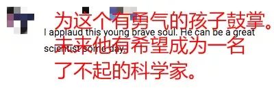 “为这个有勇气的孩子鼓掌。未来他有希望成为一名了不起的科学家。”