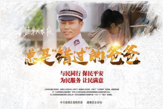 《总是“错过”的爸爸》全片5分30秒,以警察女儿的视角叙述了爸爸在自己人生中的种种“错过”:因为过年值班错过女儿的出生;因为繁忙的工作错过女儿一次又一次的家长会;就连女儿受伤,他也因为工作出差无奈地错过……这样的错过太多太多,但女儿很坚强,她从不抱怨,只是有点不理解,直到父亲在查酒驾时被车撞伤进了医院,当她看到父亲术后苍白的脸色,身上各种线和管子,听着仪器发出的滴答声,她的坚强立刻土崩瓦解,从那以后,她也渐渐开始懂得父亲的艰辛与对警察工作的热爱。女儿爱用汪国真先生的一句诗形容自己的父亲:既然选择了前方,便只顾风雨兼程。