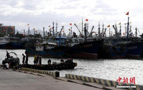 8月24日,厦门高崎渔港加固好渔船的渔民们坐着小船上岸避风。 张斌 摄