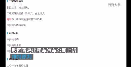 8月24日,山东青岛。因车费问题,司机用石块砸死母子一案,法院一审判决青岛出租汽车公司赔偿195万元,该公司不服上诉。最终青岛中院驳回上诉,维持原判。