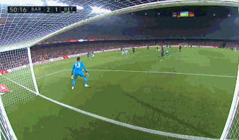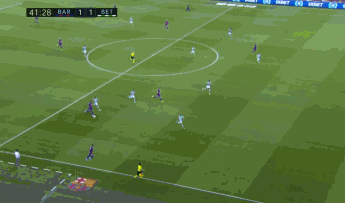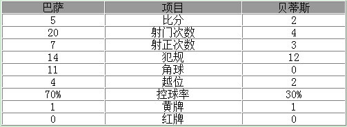 梅西在看台上愁眉不展。第31分钟,皮克战术犯规吃牌,费基尔大力任意球远射造成门将脱手。第37分钟,阿尔巴左翼沉底传中,拉菲尼亚前点推射,被西德内挡出底线。