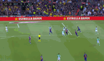 比达尔替补布斯克茨出战。第77分钟,格列兹曼禁区左肋横敲,比达尔禁区右肋铲射,5-1。