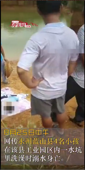 8月25日中午,网传永州蓝山县4名小孩在该县工业园区内一水坑里洗澡时溺水身亡。随后,今日女报谭里和工作室记者联系到蓝山县有关部门负责人,该负责人回应称,该县确实发生了4名小孩溺亡事件,但水坑是否在工业园区内还在核实。