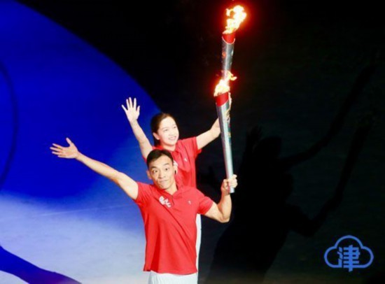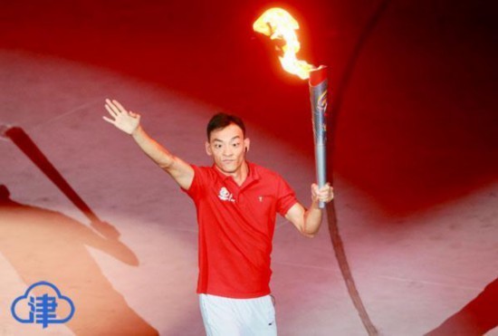 8月25日晚,全国第十届残运会暨第七届特奥会开幕式在天津体育馆举行。圣火点燃的一刻,将开幕式推向高潮。(记者 马成 刘欣)