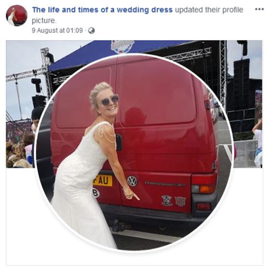 英国女子黎明穿着婚纱外出。图片来源:社交媒体截图。